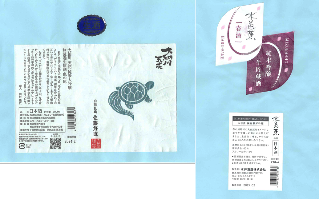 「酒の間」の大納川「大納川」ラベルと永井酒造「水芭蕉」ラベルに追加しました。
