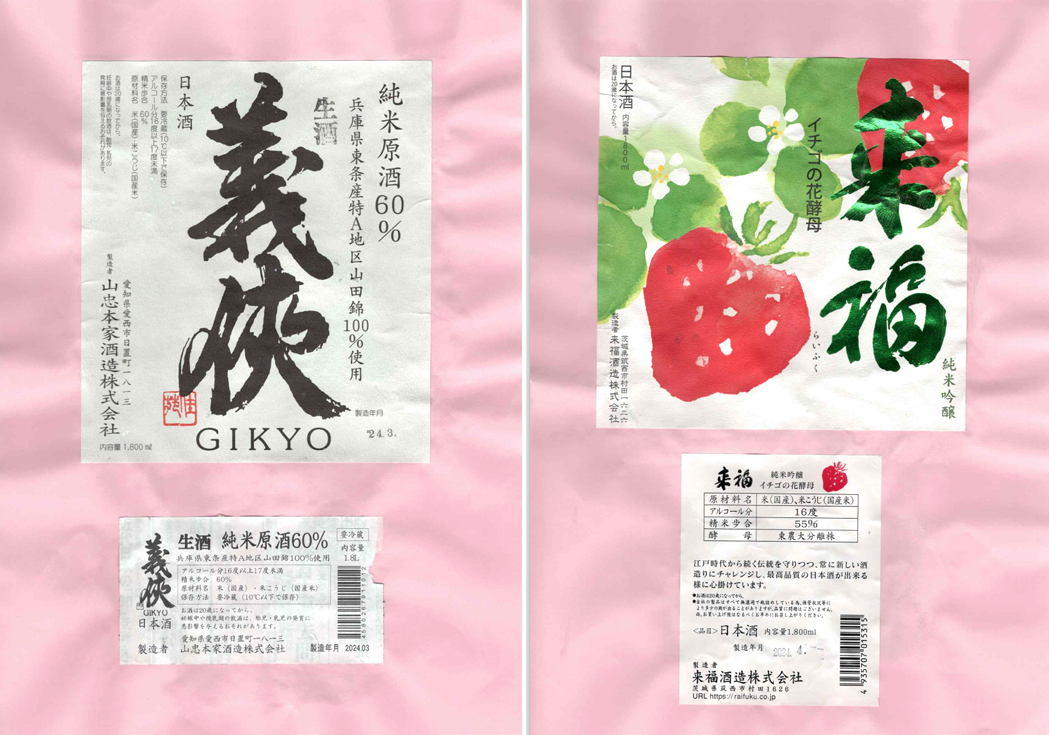 「酒の間」の山忠本家酒造「義侠」ラベルと来福酒造「来福」ラベルに追加しました。