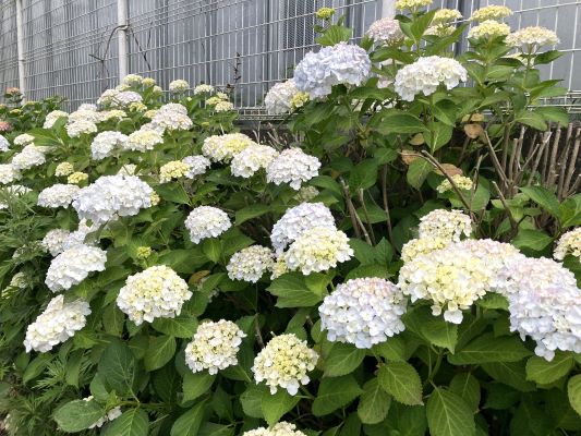 場所によってはもっと色の濃い紫陽花も見かけますが、こういうのも地味で何となく良いものですね。