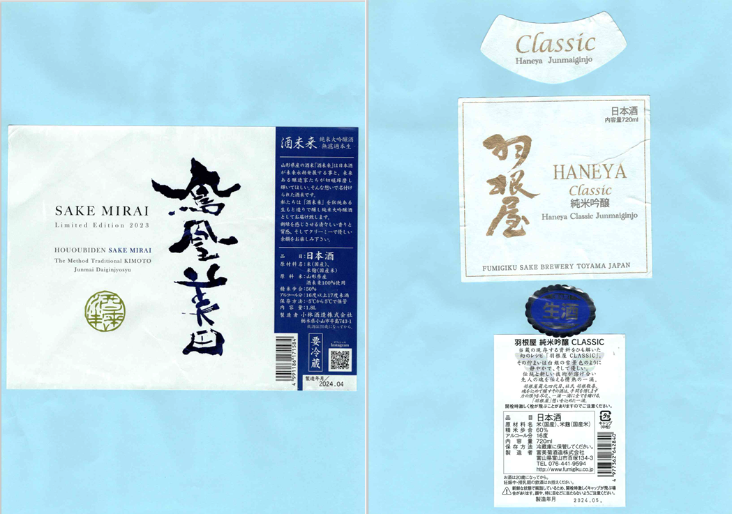 「酒の間」の小林酒造「鳳凰美田」ラベルと富美菊酒造「羽根屋」ラベルに追加しました。