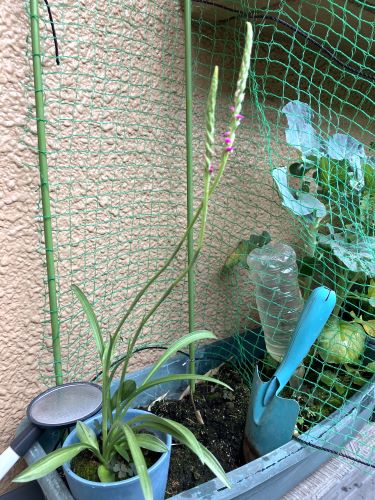 暖かく(暑く)なって我が家のベランダは緑に覆われています。