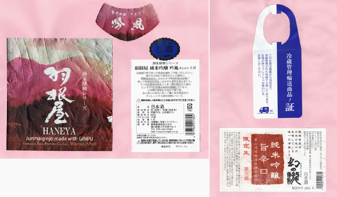 「酒の間」の富美菊酒造「羽根屋」ラベルと皇国晴酒造「幻の瀧」ラベルに追加しました。