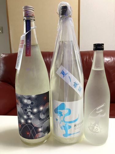 帰りに、自宅近くの酒屋さんで日本酒を2本と焼酎を1本手に入れて帰りました。