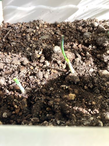 ついでに、買って来た小葱の根から5㎝程度を切って植えてみました。