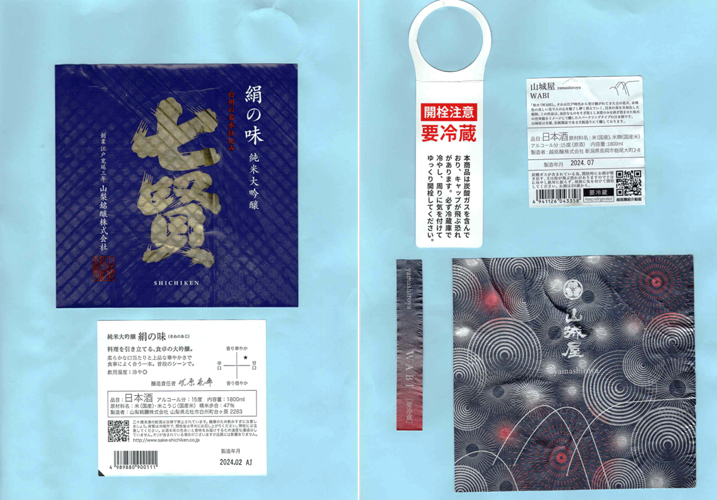 「酒の間」の山梨銘醸「七賢」ラベルと越銘醸「山城屋」ラベルに追加しました。