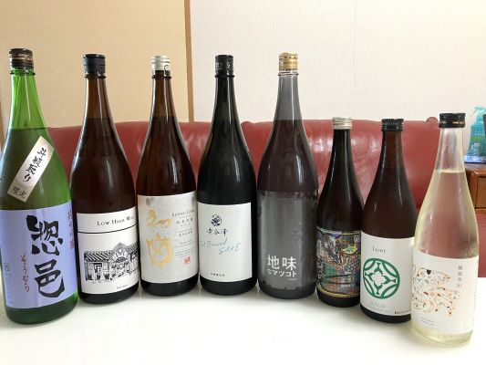 ※左から 惣邑・ヴェシカパイシス・初亀・黄金澤・松の寿・阿部勘・酔鯨・鳳凰美田