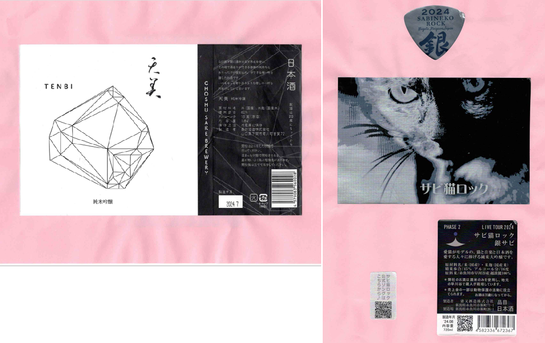「酒の間」の長州酒造「天美」ラベルに追加、猪又酒造「月不見の池」ラベルを追加しました。