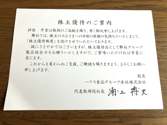 ハウス食品は、株主優待を頂くのは初めてです。