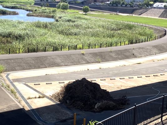 先日の大雨で浸水して未だ閉鎖されている境川遊水地公園の一部。