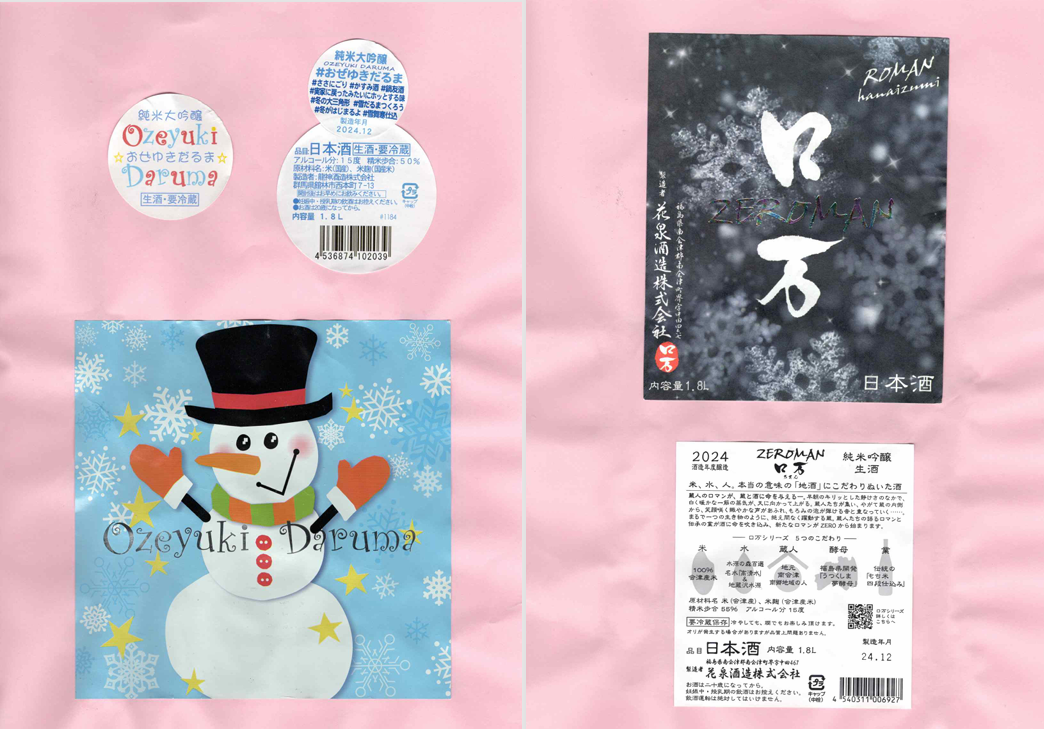 「酒の間」の龍神酒造「尾瀬の雪どけ」ラベルと花泉酒造「ロ万」ラベルに追加しました。