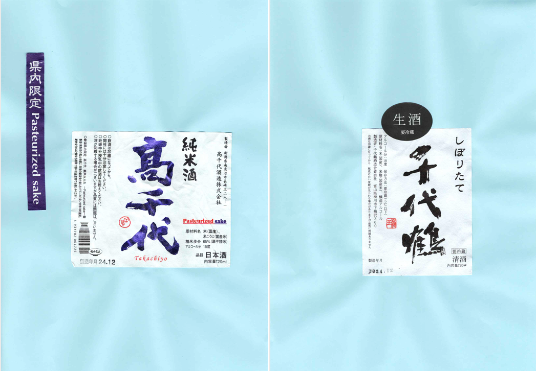 「酒の間」の高千代酒造「高千代」ラベルと千代鶴酒造「千代鶴」ラベルに追加しました。