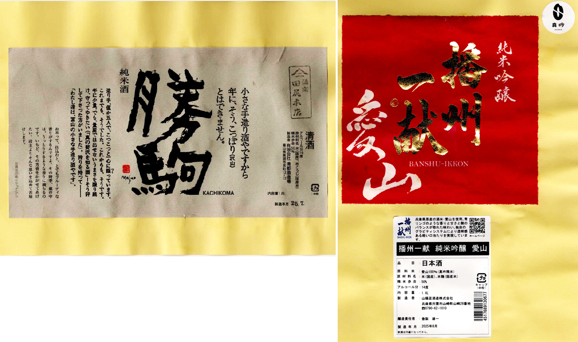 「酒の間」の清都酒造場「勝駒」ラベルと山陽盃酒造「播州一献」ラベルに追加しました。