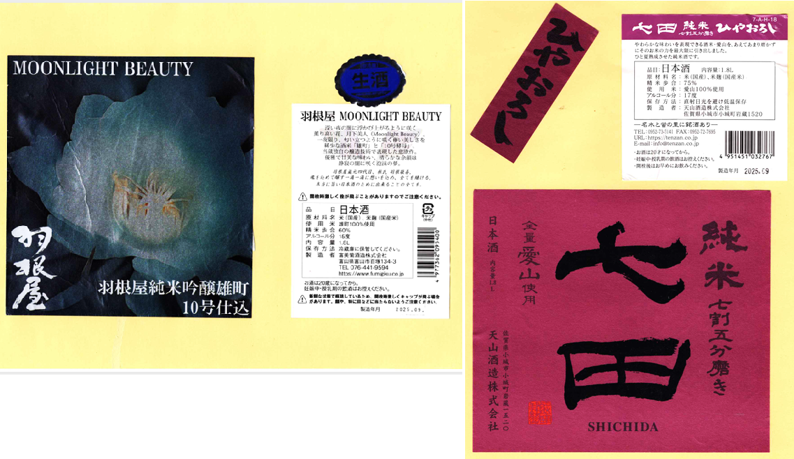 「酒の間」の富美菊酒造「羽根屋」ラベルと天山酒造「七田」ラベルに追加しました。
