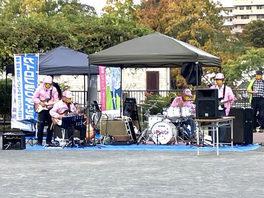 白いテントを中心に右は紅葉した木のあたり、左は写しきれていない場所まで。
