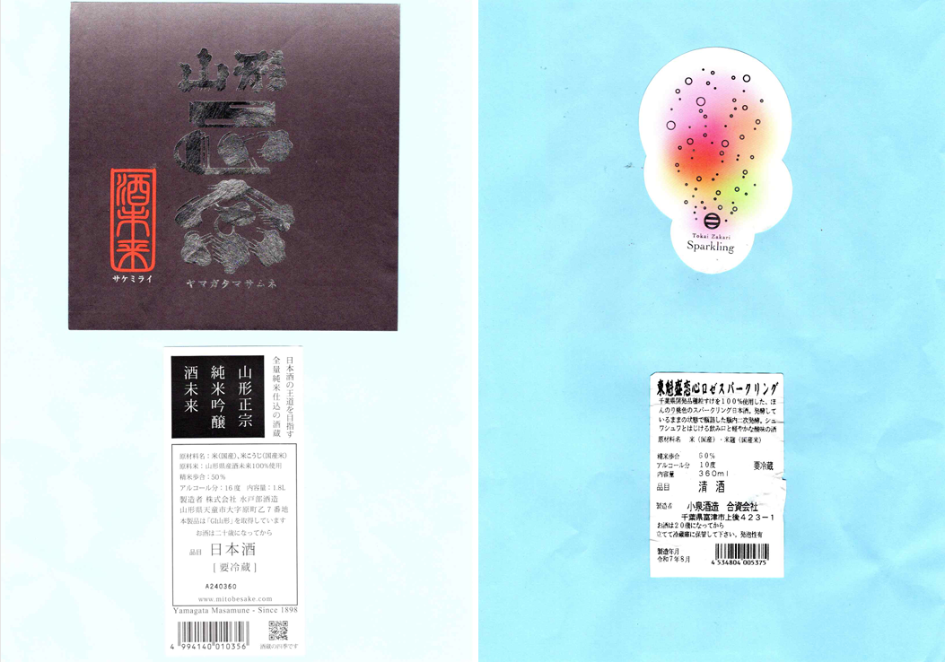 「酒の間」の三戸部酒造「山形正宗」ラベルと小泉酒造「東魁盛」ラベルに追加しました。