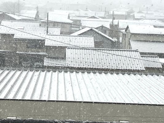 面会に向かおうとしたら・・・うっすらと積もっている。