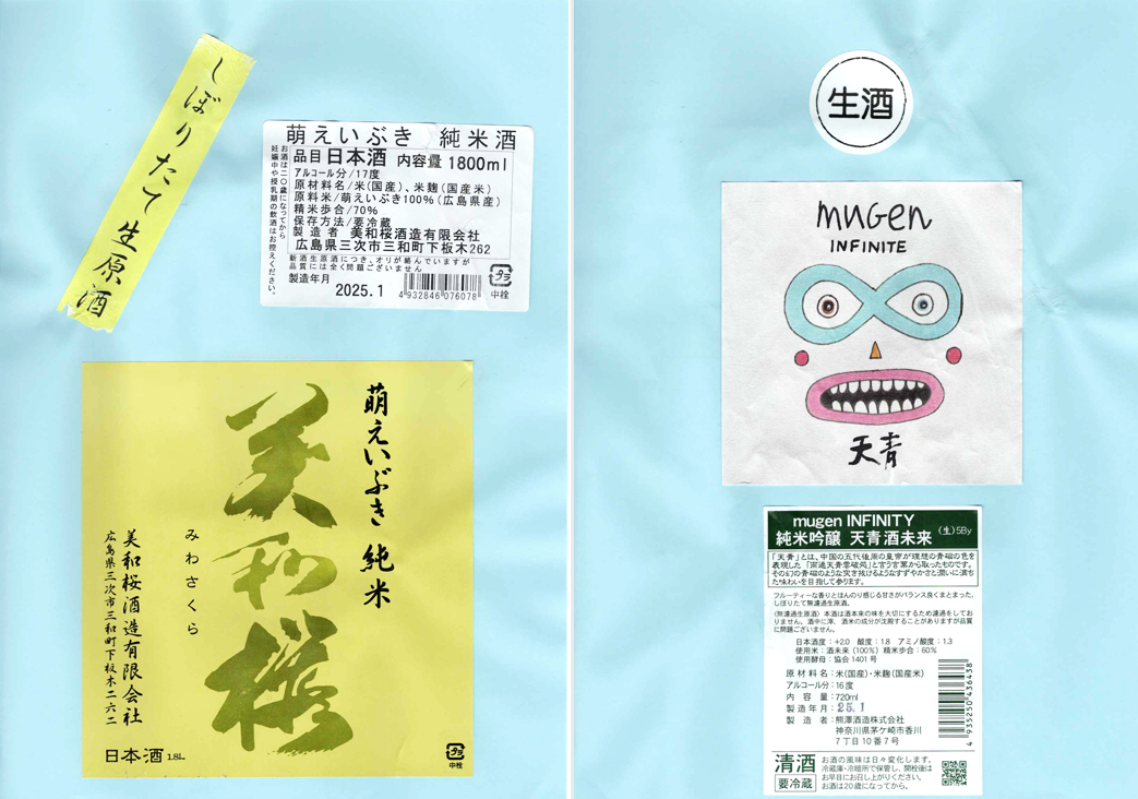 「酒の間」の美和桜酒造「美和桜」ラベルと熊澤酒造「天青」ラベルに追加しました。