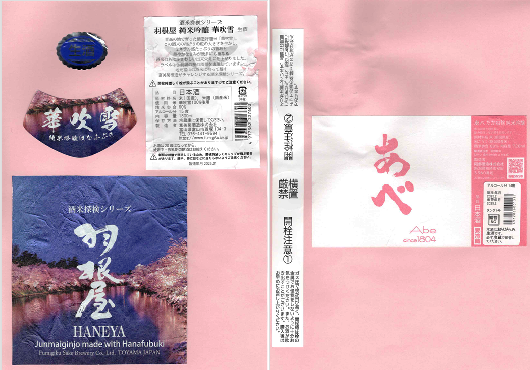 「酒の間」の富美菊酒造「羽根屋」ラベルに追加、阿部酒造「あべ」ラベルを追加しました。