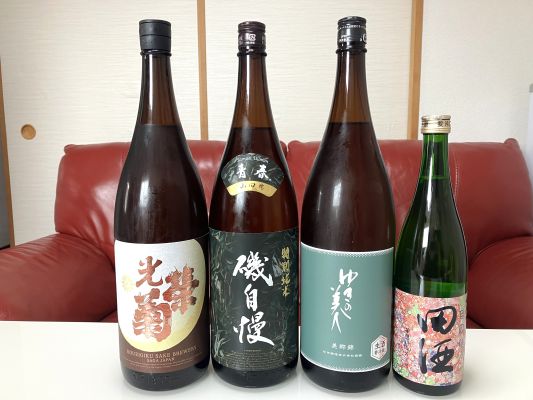 ※左から 光栄菊・磯自慢・ゆきの美人・田酒