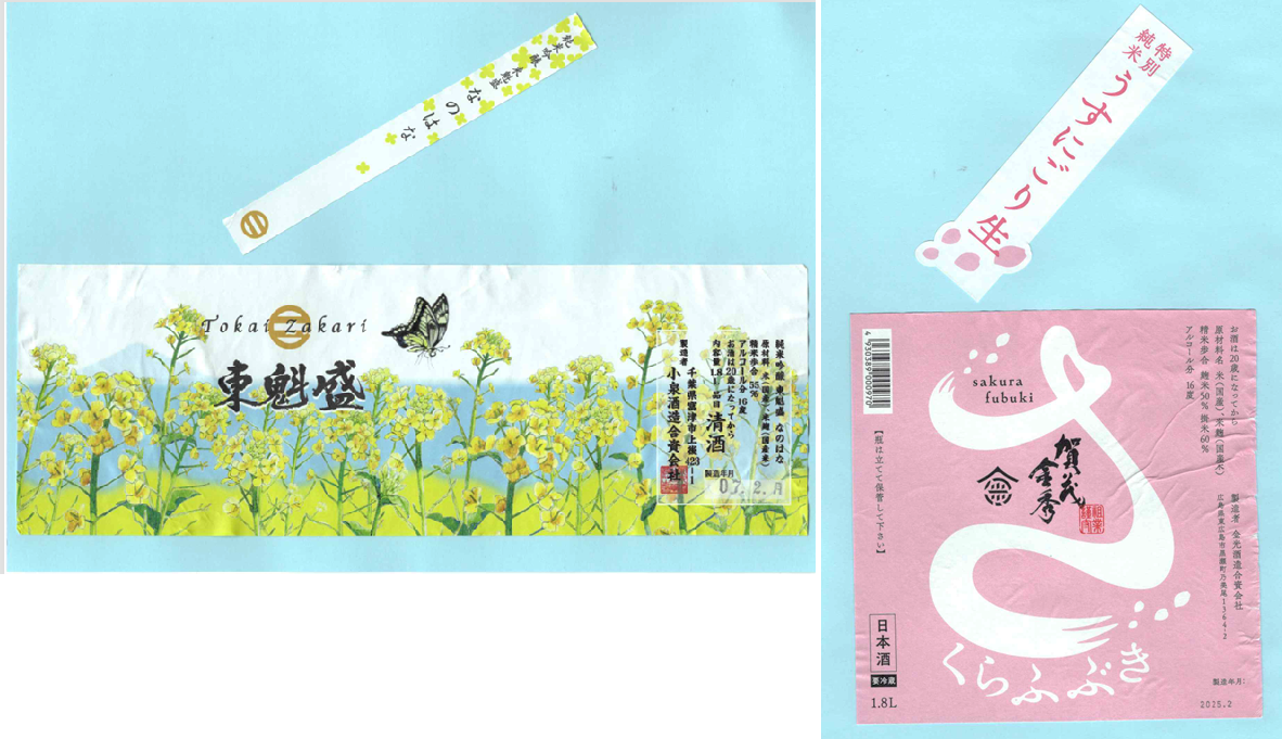 「酒の間」の小泉酒造「東魁盛」ラベルと金光酒造「賀茂金秀」ラベルに追加しました。