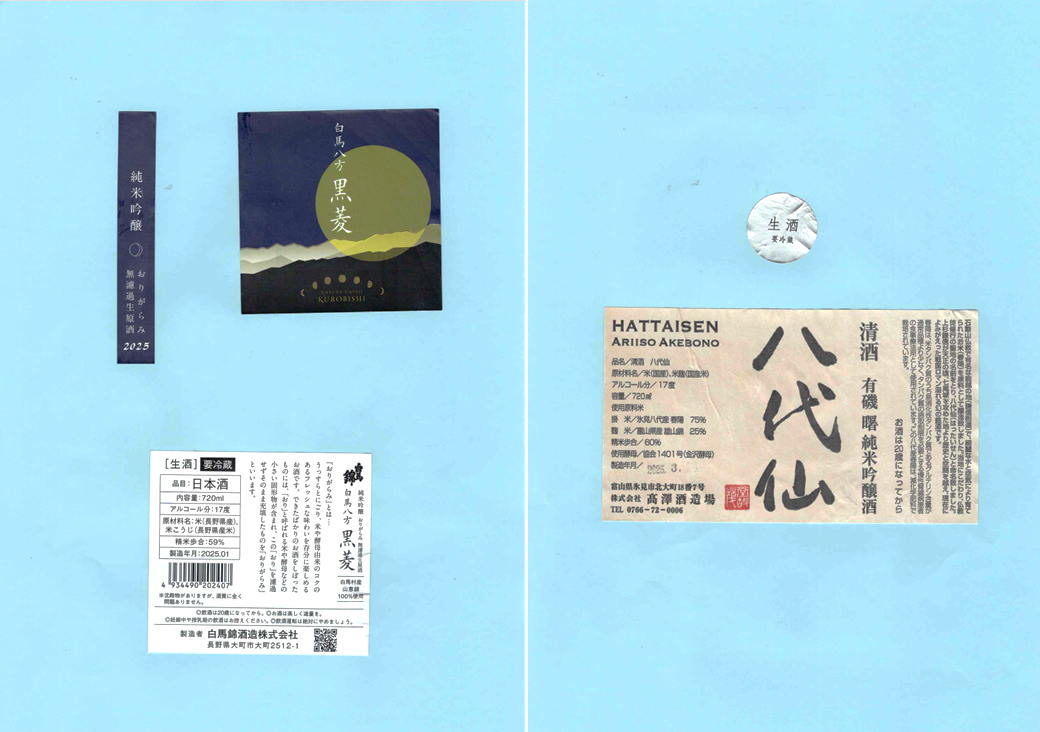 「酒の間」の白馬錦酒造「白馬錦」ラベルと高澤酒造場「曙」ラベルに追加しました。