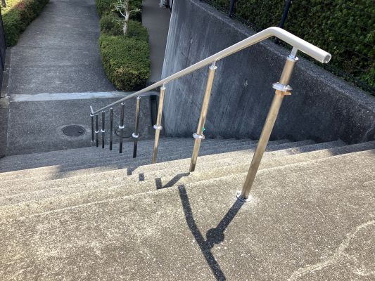 内階段と外階段があるのですが、外階段に手すりが付きました。