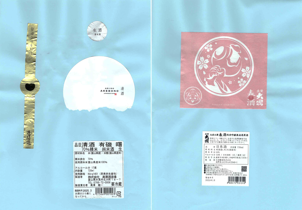 「酒の間」の高澤酒造場「曙」ラベルと北安醸造「居谷里」ラベルに追加しました。