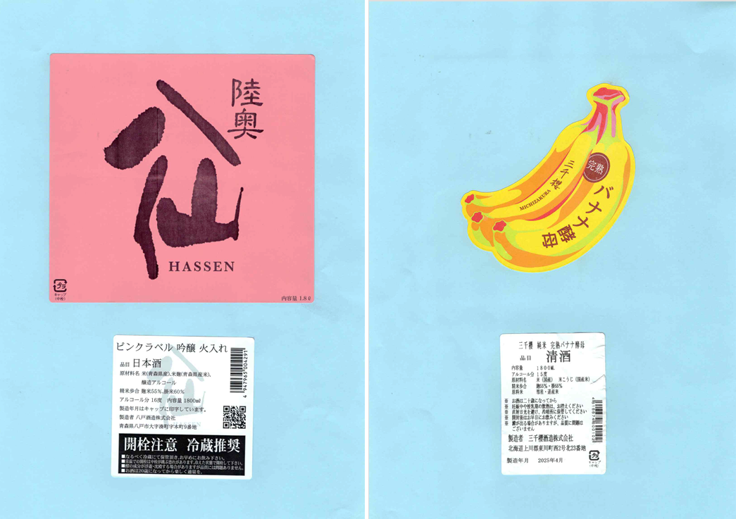 「酒の間」の八戸酒造「陸奥八仙」ラベルと三千櫻酒造「三千櫻」ラベルに追加しました。