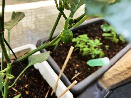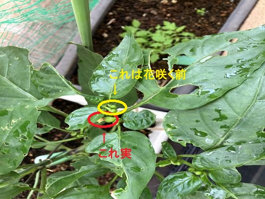 葉っぱに隠れて見えないところで成長しているピーマンが見つかりました。