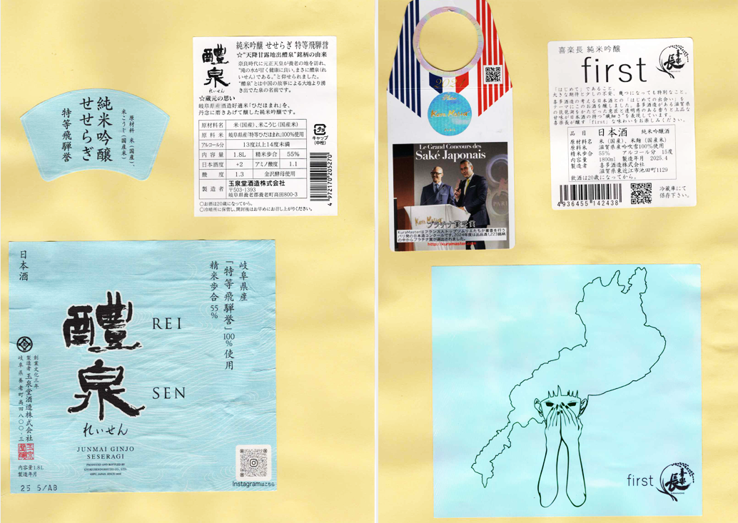 「酒の間」の玉泉堂酒造「醴泉」ラベルと喜多酒造「喜楽長」ラベルに追加しました。