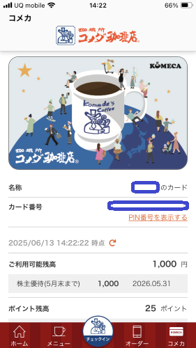 それに、株主優待として年に2回コメダで使えるプリペイドカードに1,000円づつ入金されます。