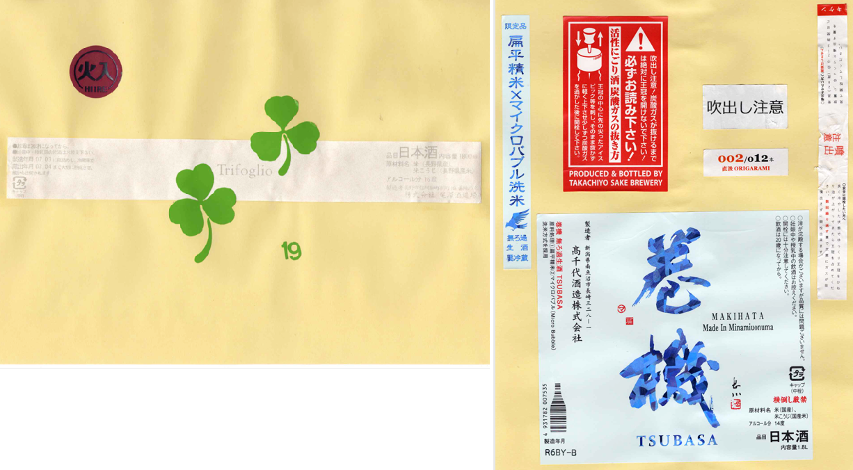 「酒の間」の尾澤酒造場「十九」ラベルと高千代酒造「高千代」ラベルに追加しました。
