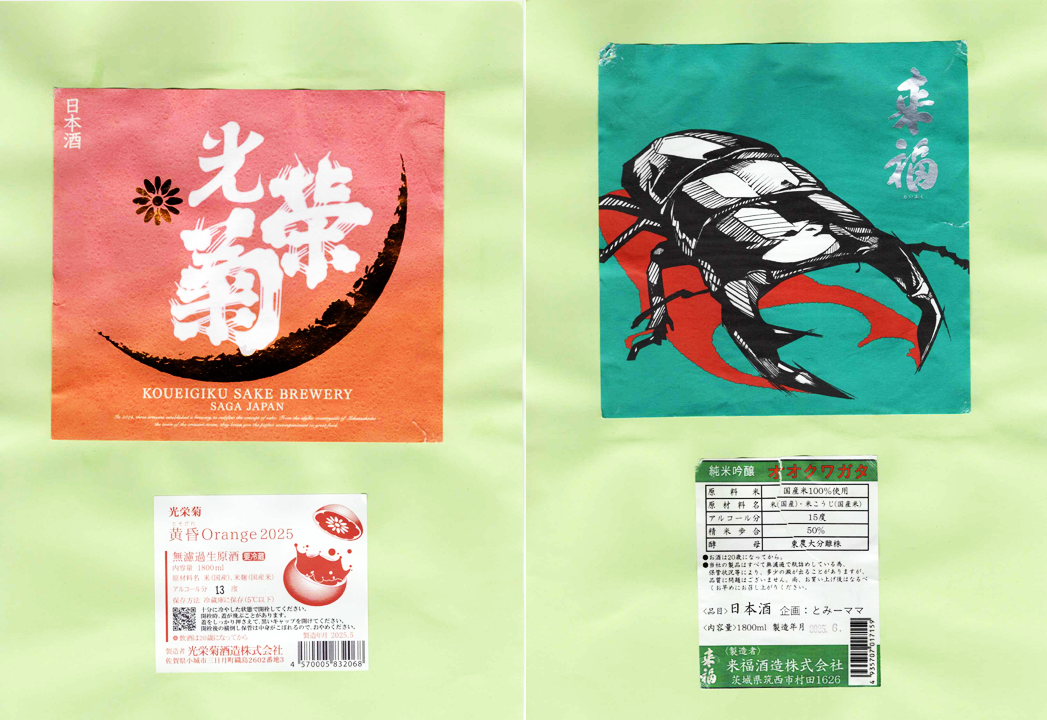 「酒の間」の光栄菊酒造「光栄菊」ラベルと来福酒造「来福」ラベルに追加しました。