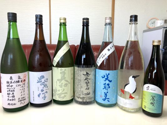 ※左から 亀泉・紫宙・美和桜・鳳凰美田・咲耶美・十九・賀茂金秀
