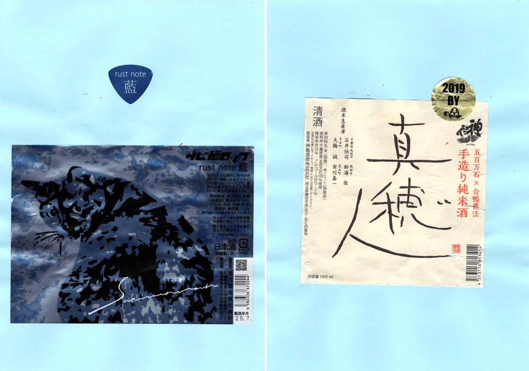「酒の間」の猪又酒造「月不見の池」ラベルと神亀酒造「神亀」ラベルに追加しました。