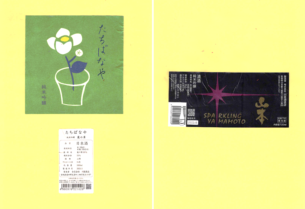 「酒の間」の川敬商店「橘屋」ラベルと山本酒造店「山本」ラベルに追加しました。