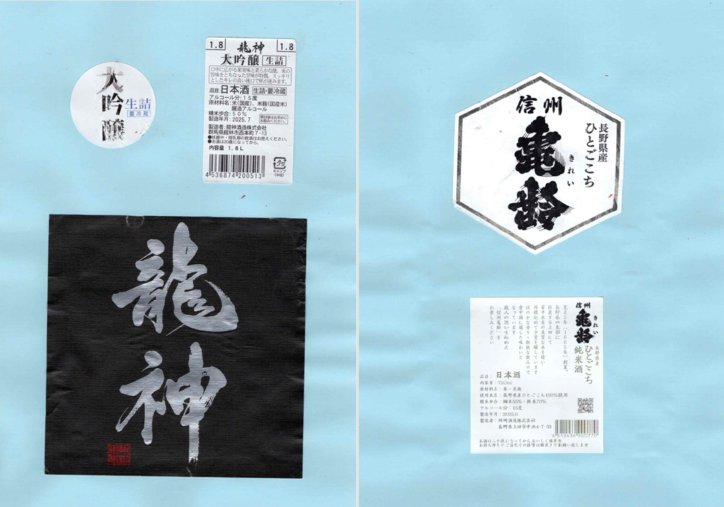 「酒の間」の龍神酒造「尾瀬の雪どけ」ラベルと岡崎酒造「亀齢」ラベルに追加しました。