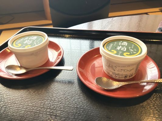 その後、サービスの酒粕アイスを頂いて夕食待ち状態になりました。