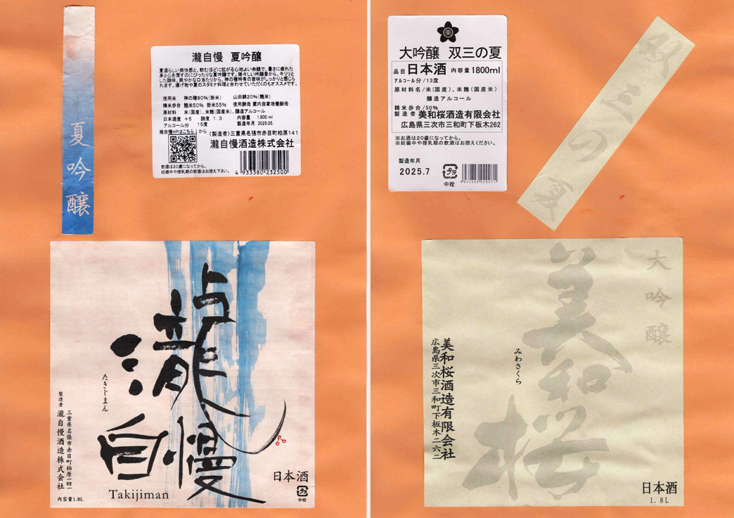 「酒の間」の瀧自慢酒造「瀧自慢」ラベルと美和桜酒造「美和桜」ラベルに追加しました。