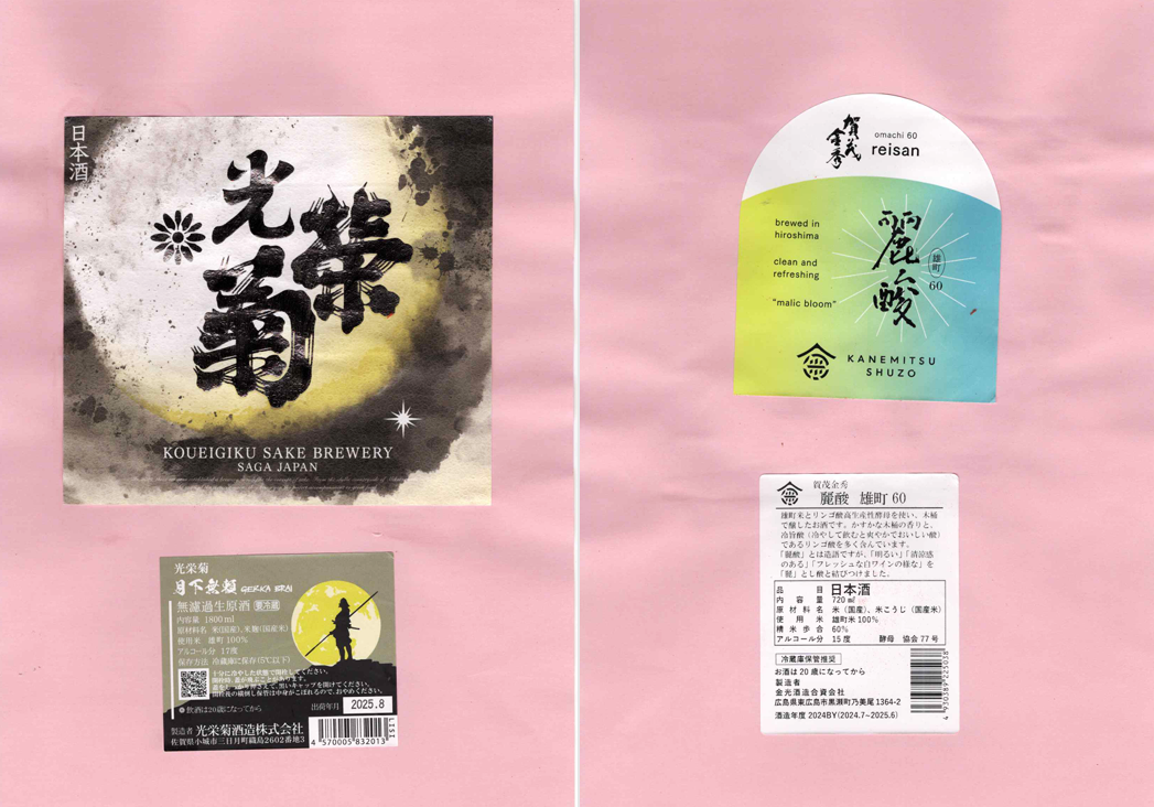 「酒の間」の光栄菊酒造「光栄菊」ラベルと金光酒造「賀茂金秀」ラベルに追加しました。
