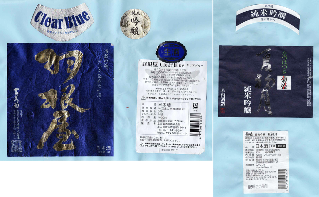 「酒の間」の富美菊酒造「羽根屋」ラベルと木内酒造「菊盛」ラベルに追加しました。