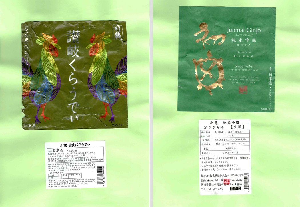 「酒の間」の川鶴酒造「川鶴」ラベルと初亀醸造「初亀」ラベルに追加しました。