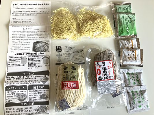 ラーメンとうどんと蕎麦各2食づつ。