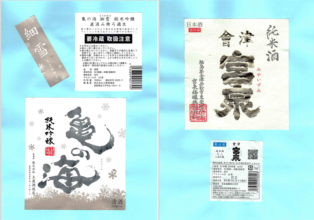 「酒の間」の土屋酒造店「亀の海」ラベルと宮泉銘醸「写楽」ラベルに追加しました。