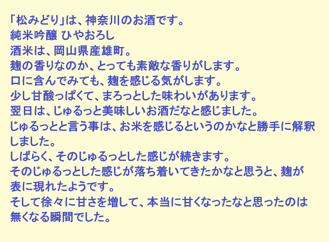 新しく開けたお酒:松みどり(神奈川)