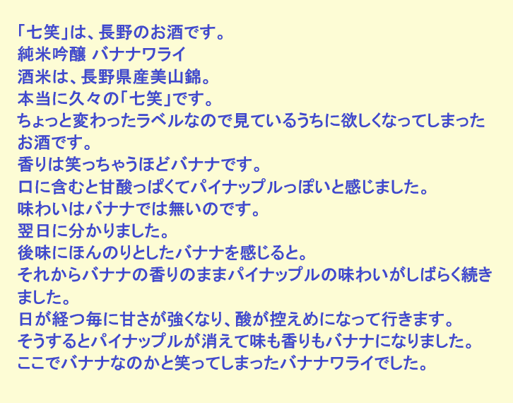 新しく開けたお酒:七笑(長野)