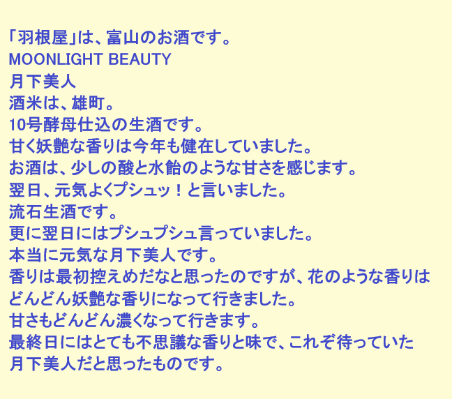 新しく開けたお酒:羽根屋(富山)