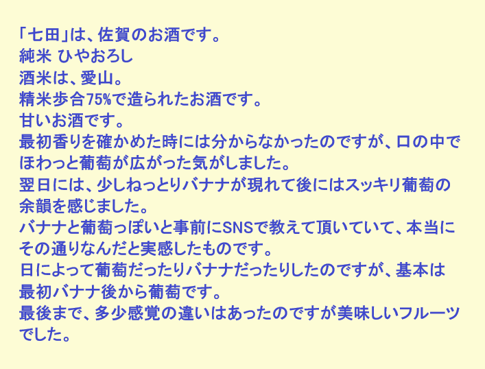 新しく開けたお酒:七田(佐賀)