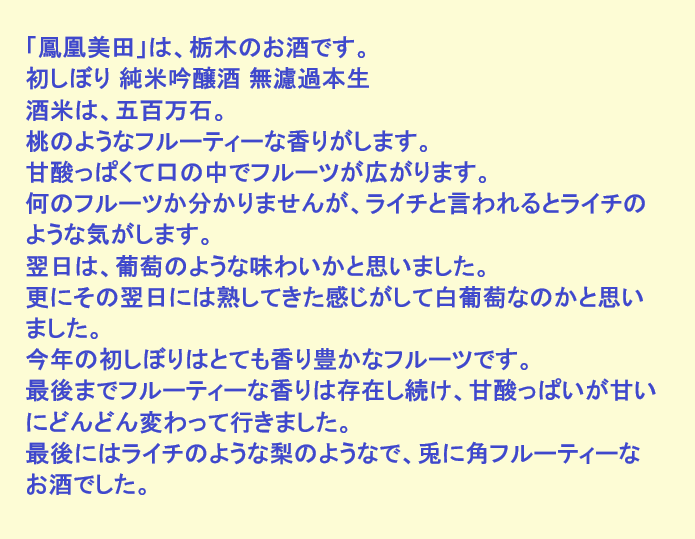 新しく開けたお酒:鳳凰美田(栃木)