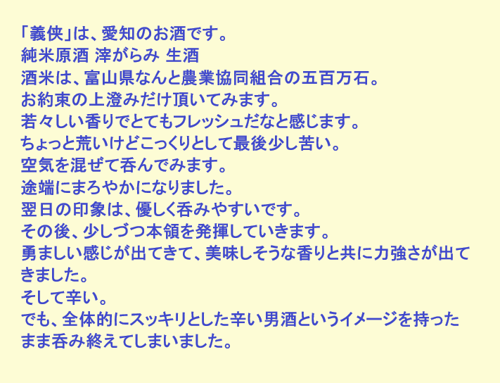 新しく開けたお酒:義侠(愛知)